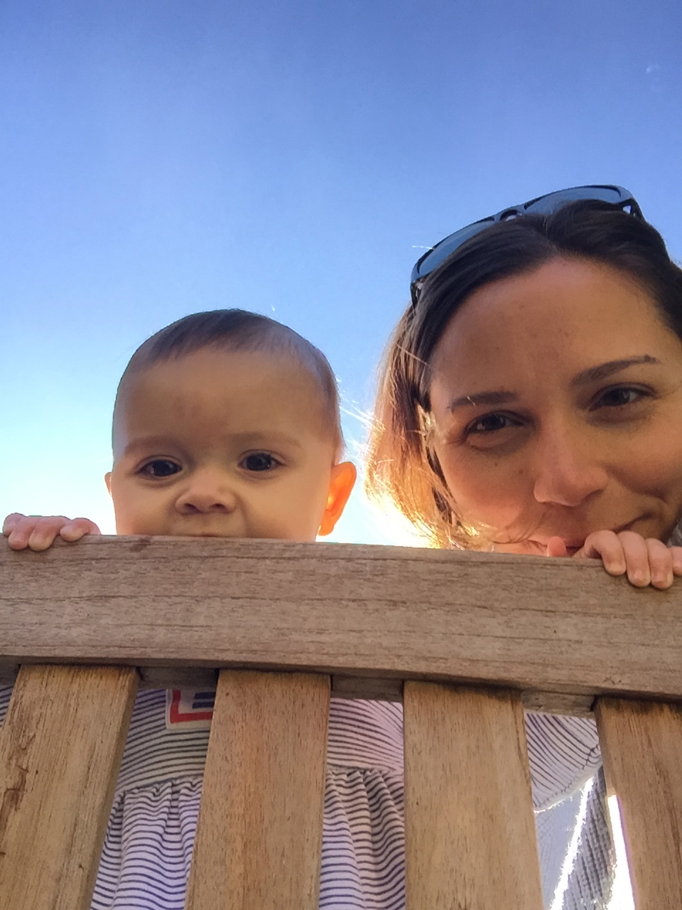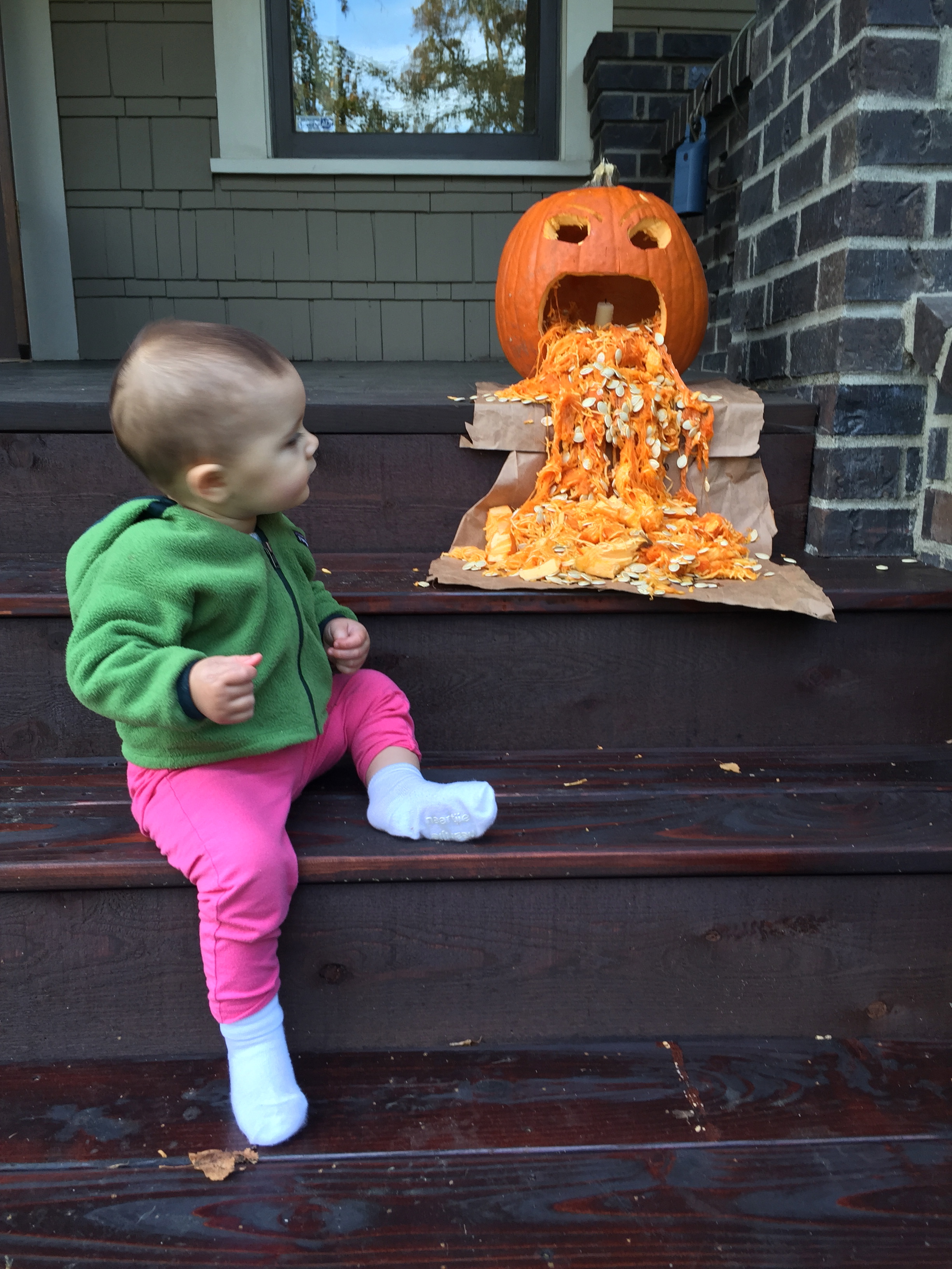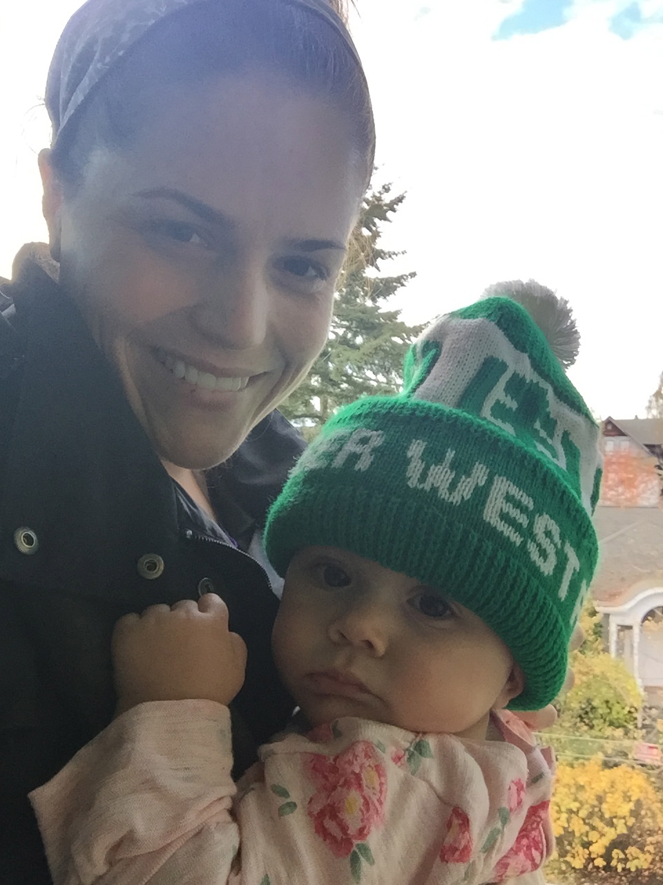 Evvie is a busy little human. She curiously cruises around with her funky crawl and pulls herself eagerly up to stand. She can balance for several seconds and is beginning to control her fall. Speaking of falls, she’s taken several tumbles down the new stairs at Bainbridge and hit her head on a good many tables, but she continues her exploratory mission with gusto.